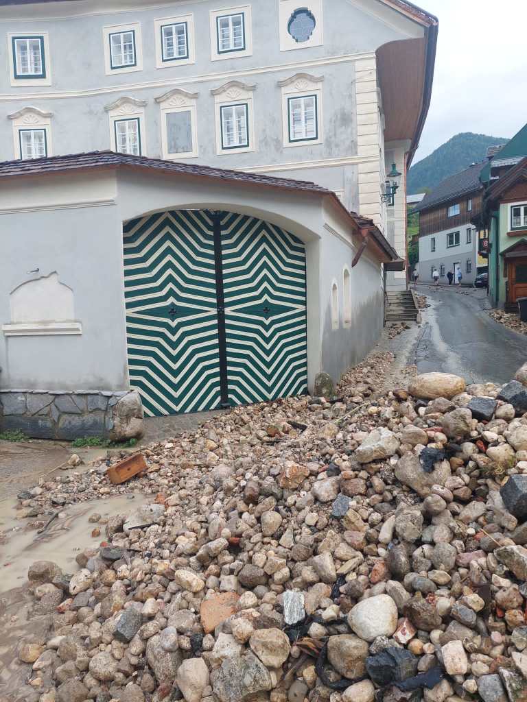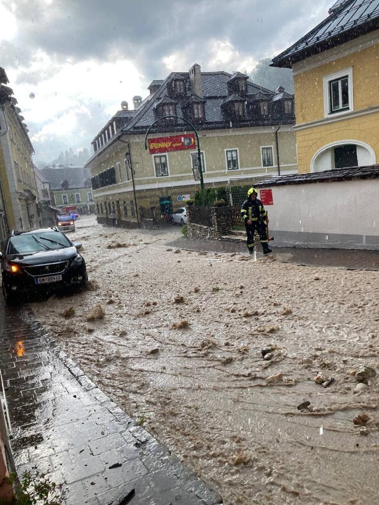 Das Zentrum von Bad Aussee wurde durch einen nur wenige Minuten dauernden Starkregen regelrecht überflutet und verwüstet.