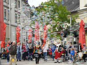 Der Regen ließ nach, trotzdem beschloss der Veranstalter, das geplante Gauklertreffen für die Bevölkerung in Altaussee in den Kurpark von Bad Aussee zu verlegen. Sogar die Sonne schaute kurz vorbei….