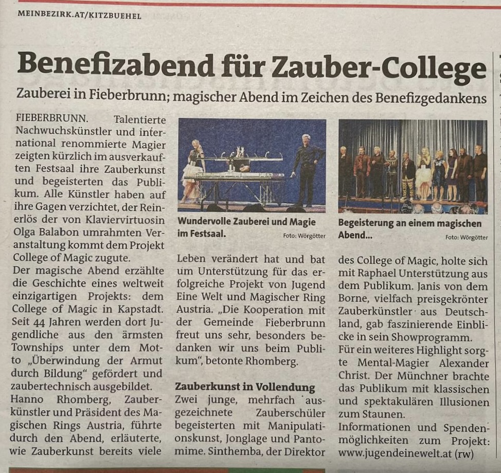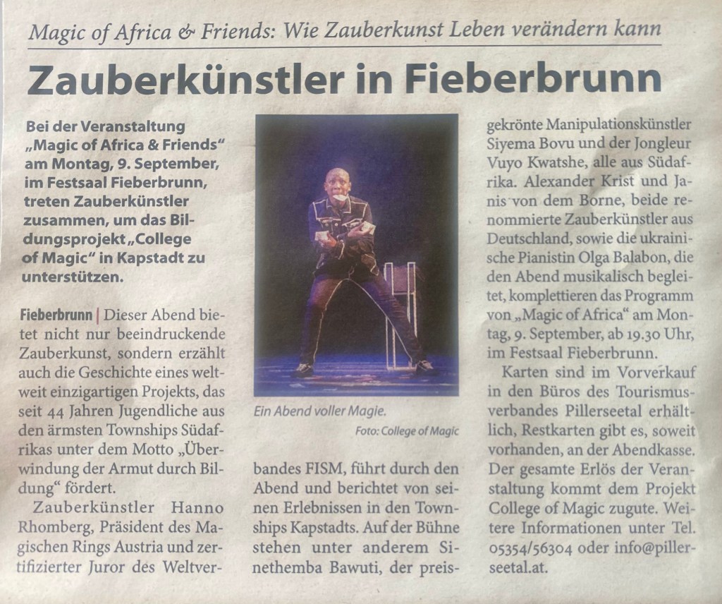 Ein Ausschnitt aus Presseberichten des Fröhlich Zauberkongress 2024 und der Satellitenveranstaltung am 9. Sept. 2024 in Tirol (Fieberbrunn / Bez. Kitzbühel)